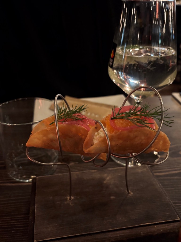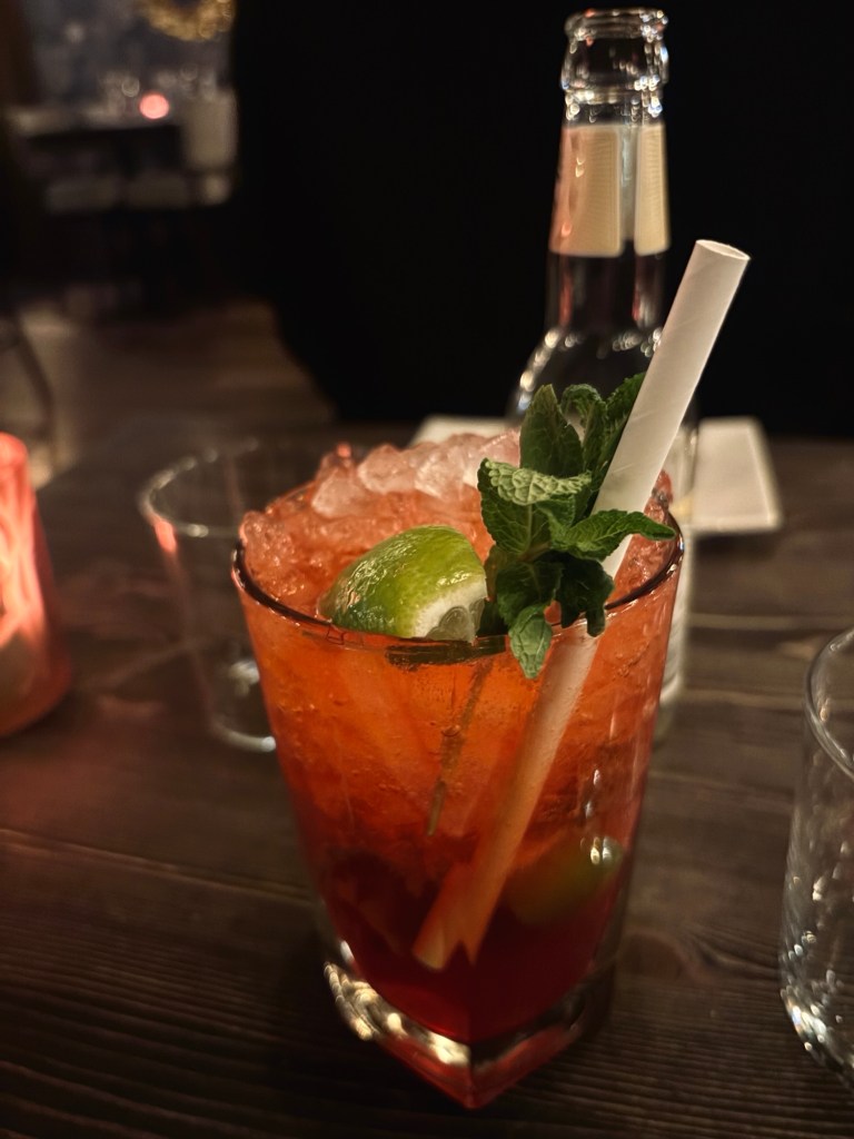 Efteråt svängde vi förbi hans jobb och tog varsin dricka. För mig blev det en alkoholfri jordgubbsmojito och för han en cider. Vi delade även på löjromstacos.