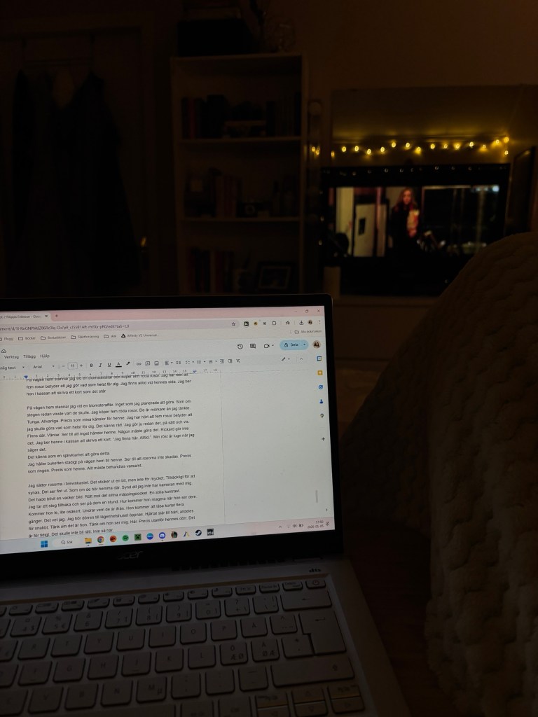 Igår hade jag mitt sista möte med skrivarkursen, vilket känns lite märkligt. Nu är det bara den sista inlämningen kvar, som ska lämnas in på måndag. Efter det har jag faktiskt inga fler inbokande måndagar. Jag läser fortfarande matte 2b, men där är det bara drygt en vecka kvar. När matten är klar är planen att söka jobb och samtidigt kolla på utbildningar inför höstterminen. Det är ju därför jag har läst matte från början, för att kunna studera vidare.
